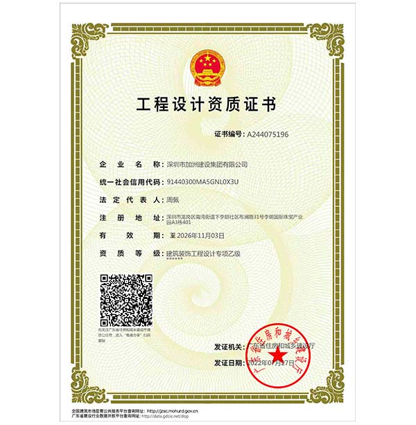 深圳市加洲建设集团有限公司,专注于深圳办公室装修、深圳办公室设计、深圳写字楼装修、深圳写字楼设计,是经国家住房与城乡建设部批准的装饰施工一级总承包,设计乙级资质的深圳办公室装修设计企业。公司作为精品建筑全程控制设计的实践者,积极尝试从项目策划、建筑设计、室内设计、景观设计、项目管理和施工监造等各个环节对项目营建的全过程提供设计控制和服务支持。