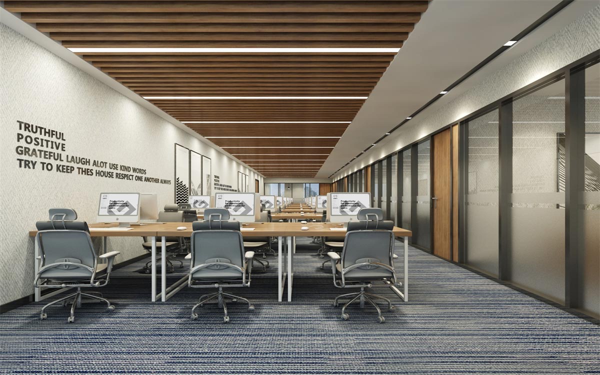 深圳市智慧城市大数据研究院是在深圳市委市政府指导下成立的公益性大数据研究智库(民办非企业单位)。我们对这种现代公司的办公室布置设计是使用大型办公室、集中办公室设计的方式增强沟通、以节省空间,方便监督,以提高效率。为了解决大空间办公环境造成相互干扰的缺点,第一,根据部门或小部门的划分,同一部门的人员一般集中在一个区域。第二个是采取低隔断,高度为1.2到1.5米,为每位员工创造一个相对封闭,独立的工作空间,减少相互的干扰。第三是有一个特殊的接待区和休息区,不要因为顾客的访问而破坏他人的安静工作。这种大型办公模式适合有创造性的劳动力技术人员和有更多社会工作的公关人员的高新企业。