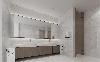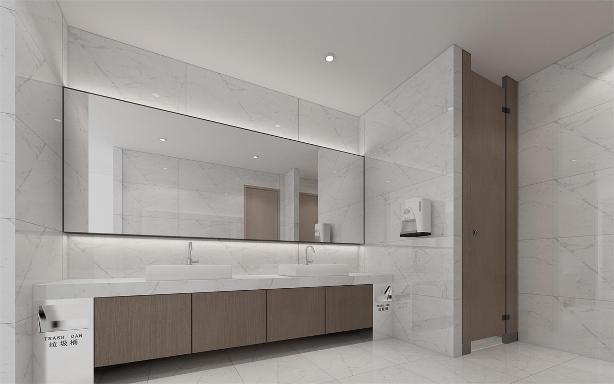 前台地板和台面采用透亮的大理石瓷砖,搭配大面积的灯带吊顶,增加整个空间的通透感,给人清新、光明、安全的舒心感。